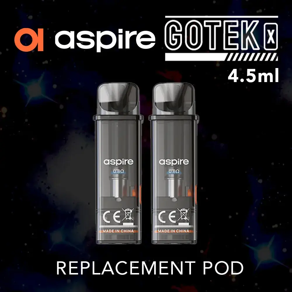 The Aspire GoTek X Replacement pods are designed to be used with the Aspire GoTex X pod kit. The refillable pods are easy to swap and refill. Merely open the rubber bung on the side and top up the pod with your favourite e-liquid. Each Aspire Gotek X Replacement Pod has up to a 4.5ml capacity and a built-in 0.8 ohm mesh coil. They have a wattage range of 13W and 16W.