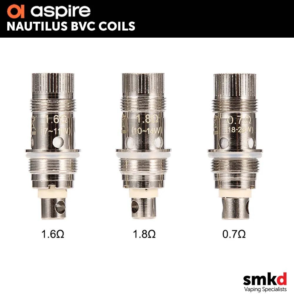 The Aspire Bottom Vertical Coil Heads. Replacement heads for the Mini Nautilus and Original Nautilus. New and innovative Vertical Coil heads offer a unique design making these atomizer heads last longer than other Aspire coils.