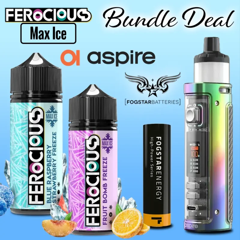 This limited-time deal combines the performance of the Aspire Veynom EX with the flavour of the Ferocious Max Ice 50/50 Collection and the dependable power of a Fogstar battery. You’ll get a complete setup for less than half the usual price — making it one of the best starter kit deals available.