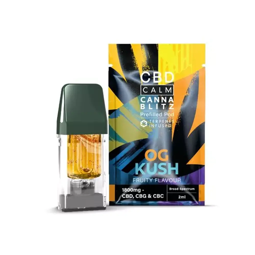 Available in a variety of terpene-inspired flavours, CBD Calm Cannablitz Prefilled Pods provide a flexible and reliable way to enjoy CBD in a portable and user-friendly format.