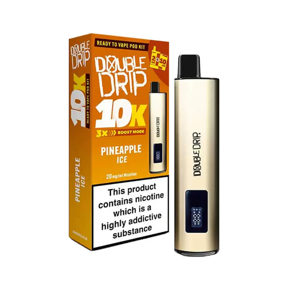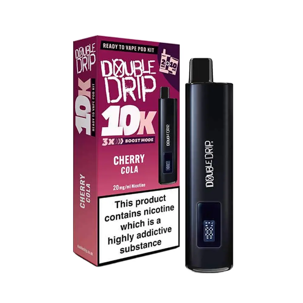 The Double Drip 10K is a prefilled pod system designed for hassle-free, flavour-packed vaping. With a built-in 2ml pod and an integrated 10ml refill reservoir, this clever system automatically replenishes the pod as you vape—providing up to 10,000 puffs per kit without the need for manual refills.