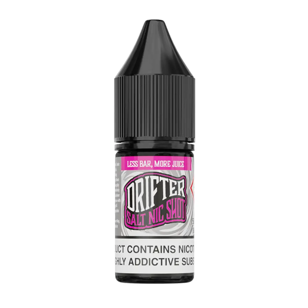 Drifter Salt Nicotine salt shots come in 10ml bottles and are available in a 20mg nicotine strength. They utilise a nicotine-benzoate salt blend, which provides an equivalent nicotine concentration of 20mg/ml. These shots are designed to be mixed with flavoured shortfill e-liquids: