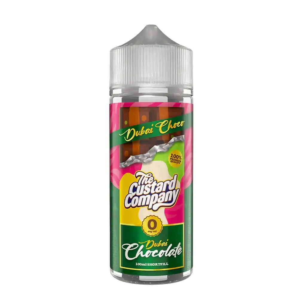Indulge in a decadent dessert vape with the Dubai Chocolate Shortfill from The Custard Company. This premium blend brings together the sweetness of smooth milk chocolate, the rich nuttiness of roasted pistachios, and the buttery crispness of kadayif pastry – a Middle Eastern delicacy known for its golden crunch.