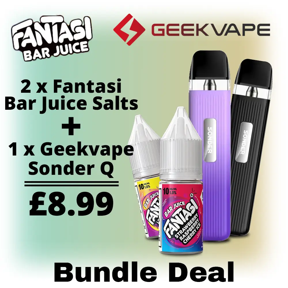 This starter bundle removes the guesswork from choosing compatible hardware and e‑liquids. The Sonder Q’s easy operation and the smooth delivery of Fantasi Bar Juice salts work in harmony to give you a dependable, flavourful vaping experience from your first puff.