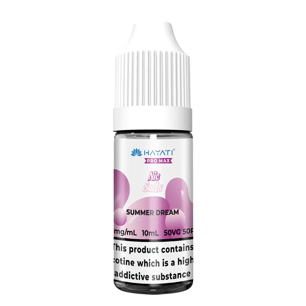 Hayati Pro Max Nic Salt E-Liquid transforms popular disposable vape flavours into eco-friendly 10ml bottles. Designed for smooth inhalation and a satisfying experience, the collection caters to both intermediate and heavy nicotine users with its 10mg and 20mg strengths.