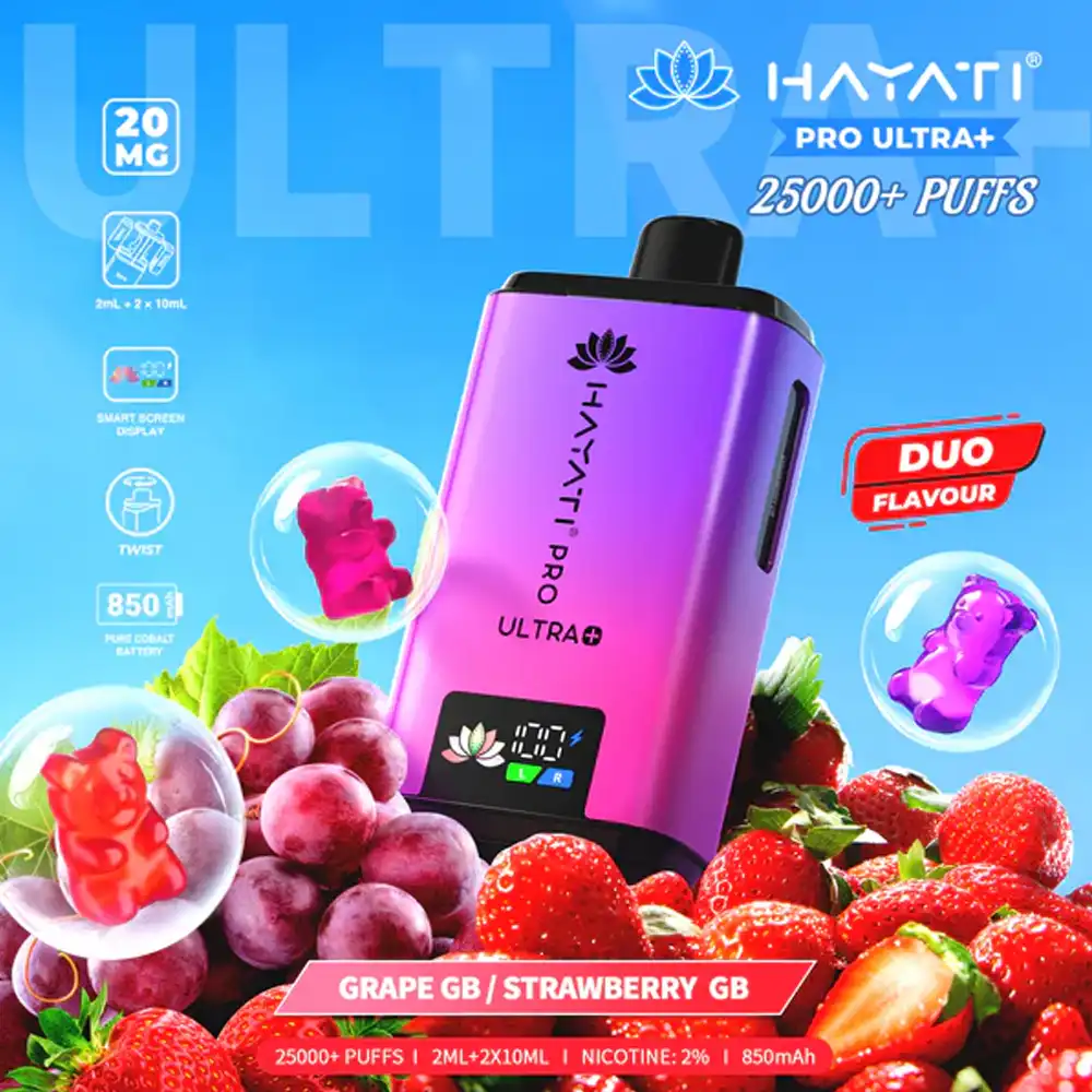 The Hayati Pro Ultra + 25K is a premium prefilled pod system designed for maximum convenience, long-lasting performance, and incredible flavour. Powered by a robust 1250mAh turbo-charging battery, this compact device delivers up to 25,000 puffs per kit, making it one of the longest-lasting options in the prefilled vape market. A smart display screen and intelligent chipset provide real-time usage data, while the USB Type-C port ensures fast recharging with minimal downtime.