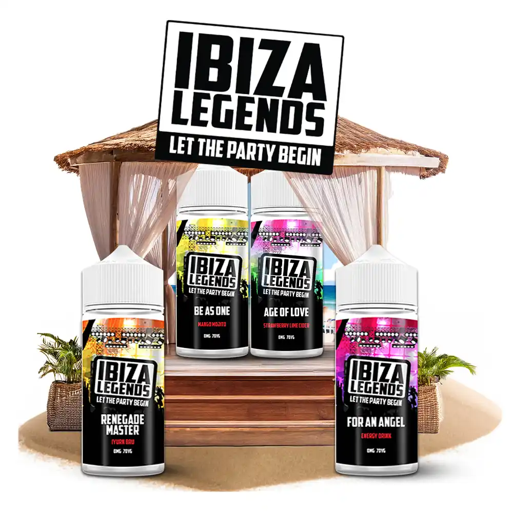 Ibiza Legends 100ml vape juice is a range of delicious fruity flavours inspired by wild summers spent dancing on the beach and sipping cocktails in the sunshine. Each bottle contains nicotine-free e-liquid leaving room for nicotine shots of any strength.