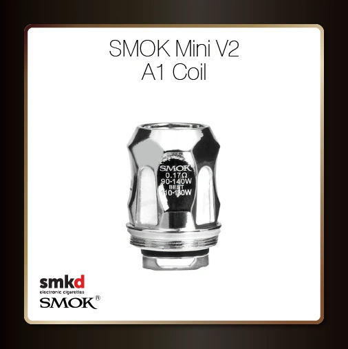 SMOK Mini V2 A1 coils have a resistance of 0.17 ohm and are to be used at 90-140 watt outputs. For optimal performance, SMOK recommend you use these coils between 110 and 130W outputs.
