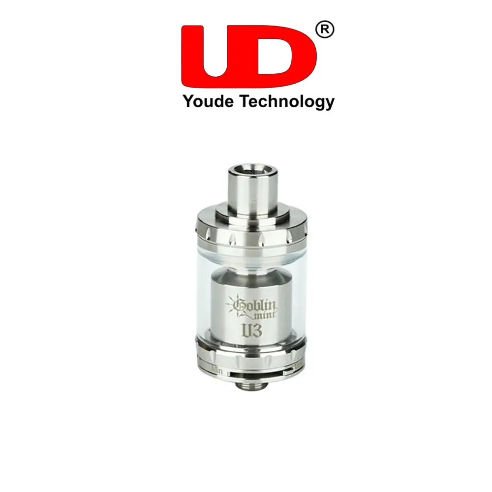 Constructed from stainless steel and glass, the UD Goblin Mini V3 RTA features a durable yet compact design. It is fully compatible with standard 510 drip tips and connects via a 510 threaded connection. Optional coloured glass tanks are available, and a 4ml extension can be purchased separately for increased e-liquid capacity.